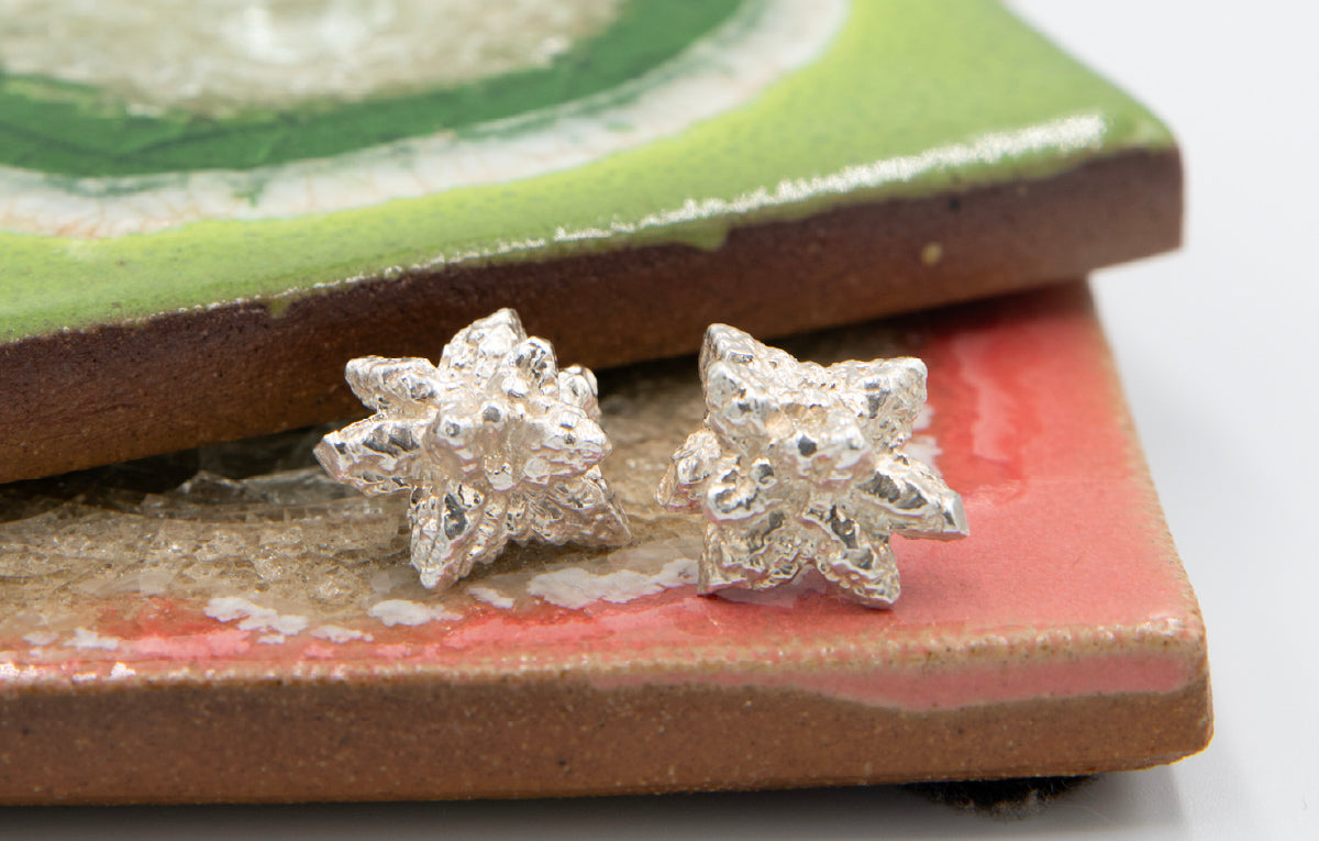 Cast from an obscure type of fossil, these Northern Lights Stud Earrings have a unique texture that catches the light in unexpected ways—just like the aurora that inspired them. Made from sterling silver, these statement studs are wildly unique. Pair with party dresses, add some understated sparkle to a sweater, they’re good for whatever, wherever, whenever.