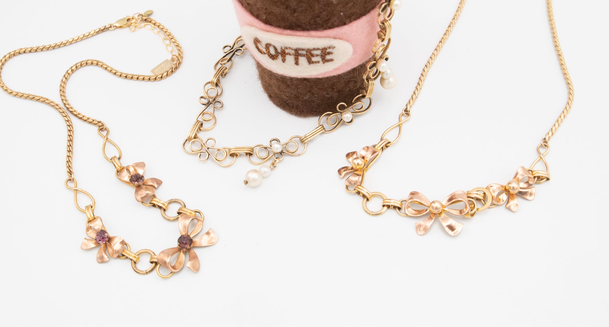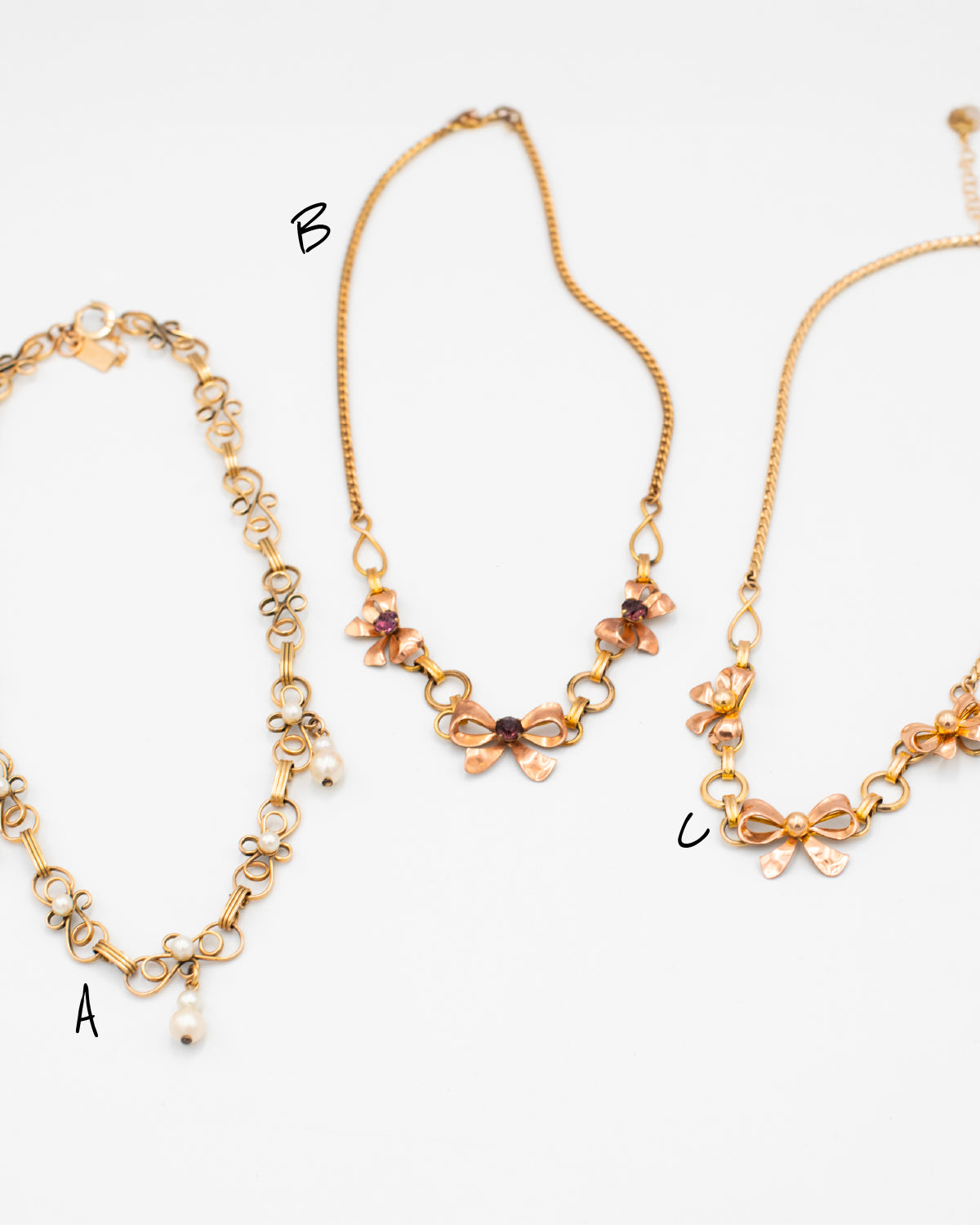 These flirty little vintage necklaces are so incredibly fun to wear. More playful than fancy, they’re irresistible with a t-shirt, and usually elicit a *gasp* of delight. Likely 1940’s - 1950’s.