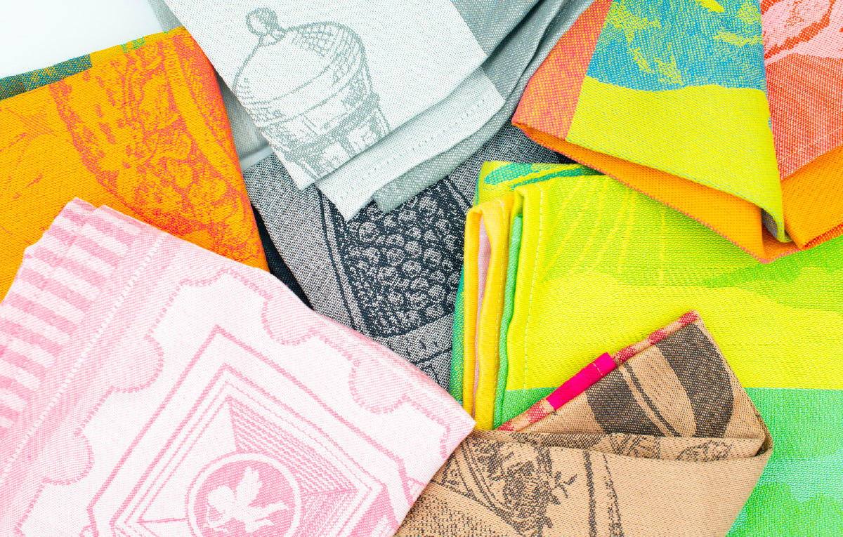 While these very traditional towels often come in very traditional French designs…we sourced some really fresh, cool prints for a modern French twist. Ooo la la. ;)