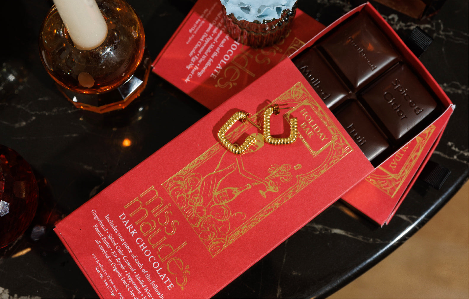 Jess Leonard founded Miss Maude with the dream of capturing the joy of tasting chocolates in a single bar. Each creation layers luxurious flavors inspired by the tastes and experiences she discovered while traveling the world. Every bar is an invitation to savor, explore, and indulge.