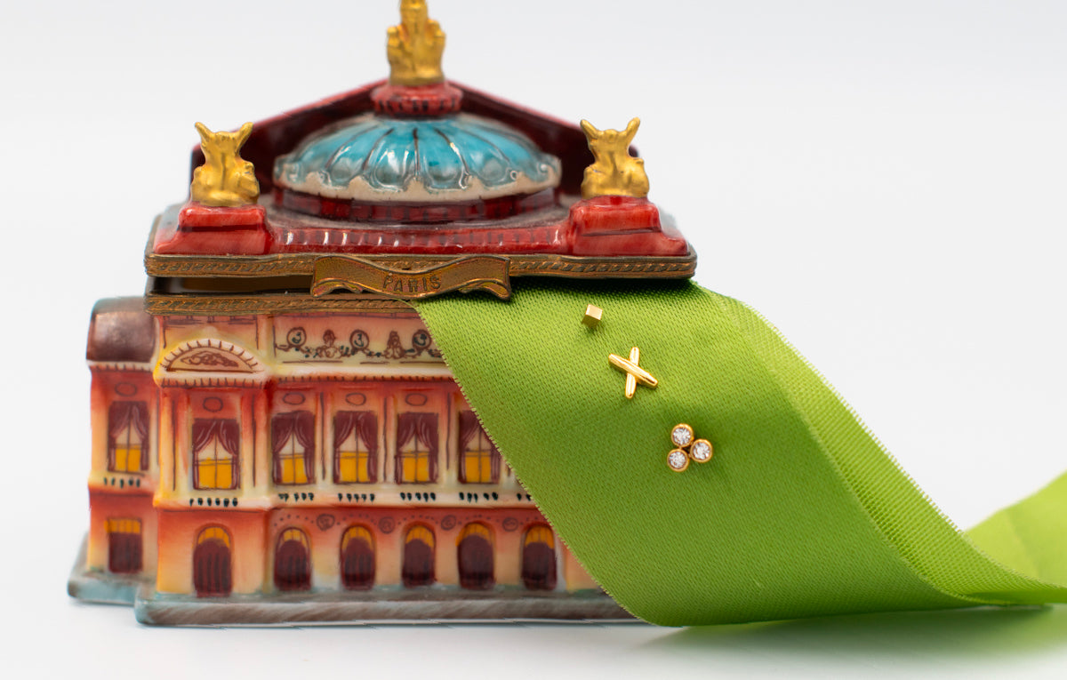 After plenty of trial and error (and a few “wait, what if we switch these two?” moments), we landed on this perfect trio. Three tiny gold studs, each a little different – one subtle, one slightly larger, one that catches the light just right. Together they create that effortless layered look that feels curated but not overdone. The vibe: delicate up high, eye-catching down low, and pretty from every angle.