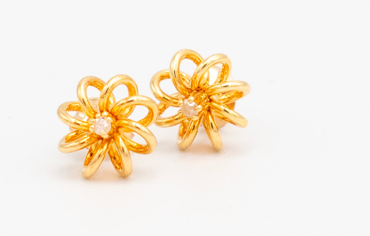 These are such a good find! 1950s–60s deadstock (aka never worn) gold-filled earrings with real diamonds (!!) are timeless and wearable…and give a little wink of mid-century luxury. We can’t believe how much they catch the light - and it’s not just the diamonds! The looping, gold-filled petals reflect light beautifully, making these earrings almost twinkle. These are some of the prettiest studs we’ve seen.