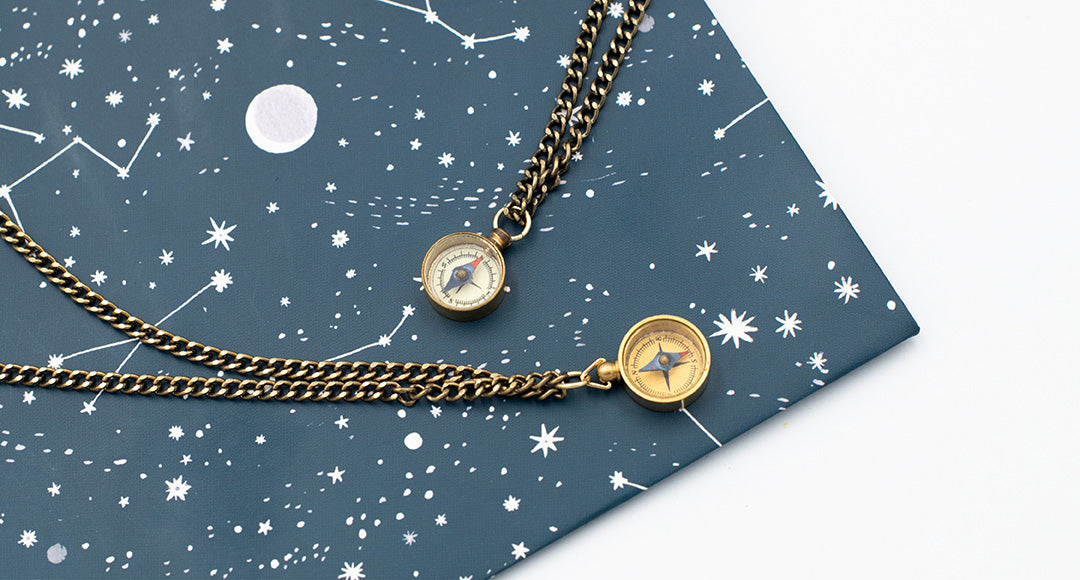 Our True North Pendant Necklace is a finely detailed, working 1970s gold-filled compass on a brass chain. Symbolizing guidance, adventure, and personal journey, it’s a sweet little reminder to listen to your instincts: take the detour, book the trip, try the thing. Let’s freaking go.