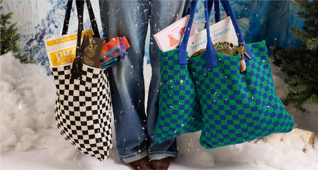 Woven Checkered Tote Bag