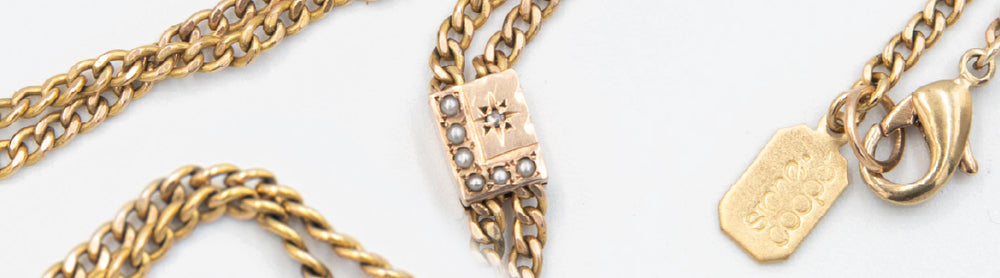 Our Antique Chatelaine Necklaces are…extraordinary. Made from authentic, late-Victorian lorgnette chains, each is a true antique, crafted in high-quality gold-fill (the standard for strength and everyday wear in the 1800’s), and retains their original functioning slide and their original dog clip - the very same clip Victorian women used to fasten glasses, scissors, tiny pencils, or lockets.