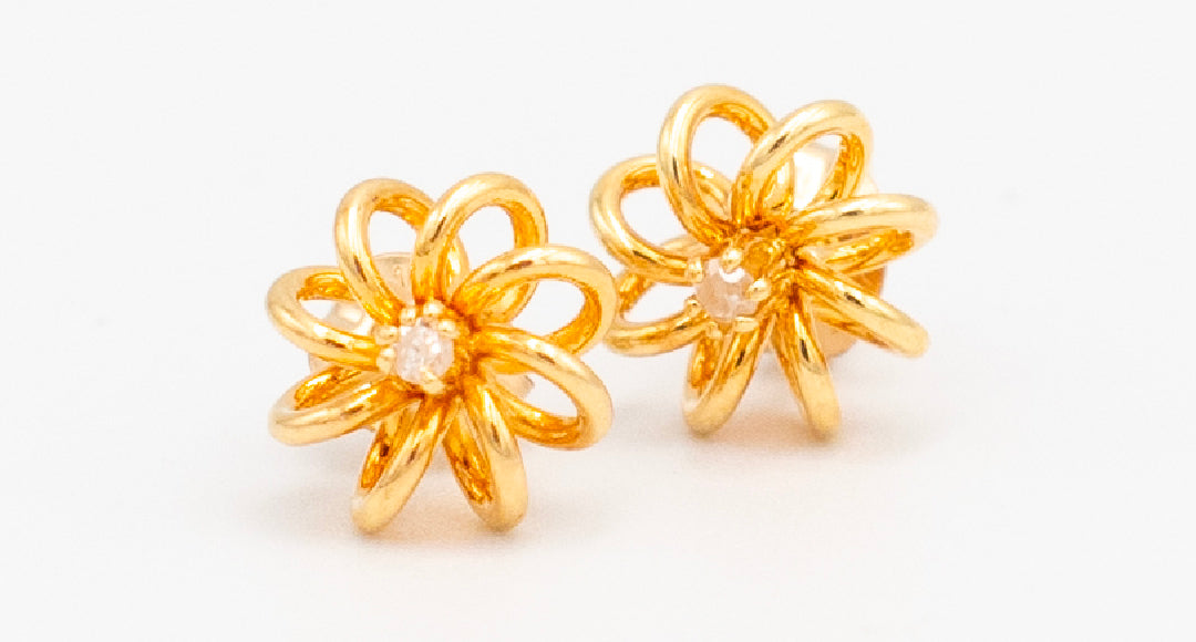 Vintage Petal Twirl Studs W/ Diamond