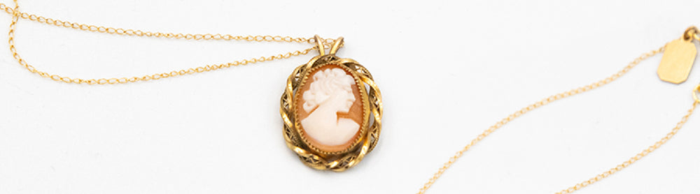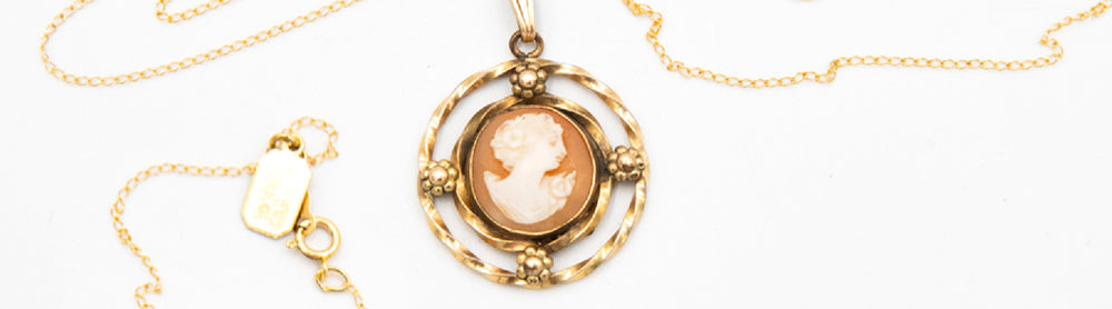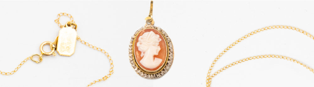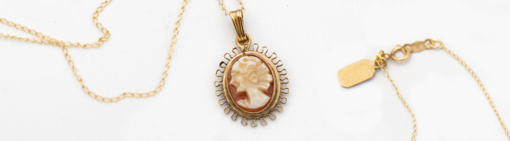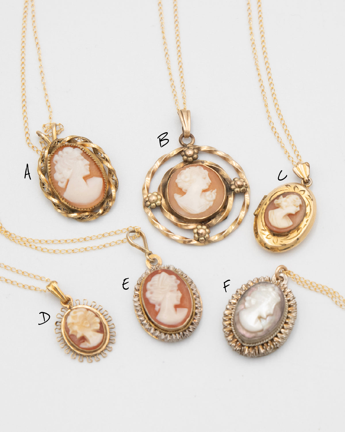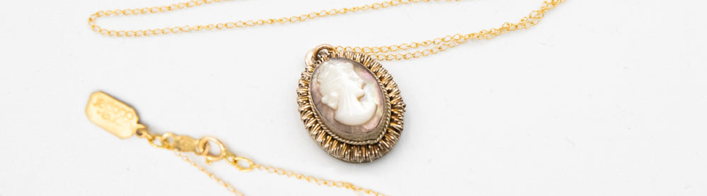 These antique necklaces feature hand-carved shell cameos (and one rare glass cameo!) framed in glowing gold-fill pendants. Each hangs from an 18in deadstock gold-fill chain. It’s the kind of heirloom-worthy necklace that feels both classic and unexpectedly modern - a fresh (yet nostalgic) everyday piece.